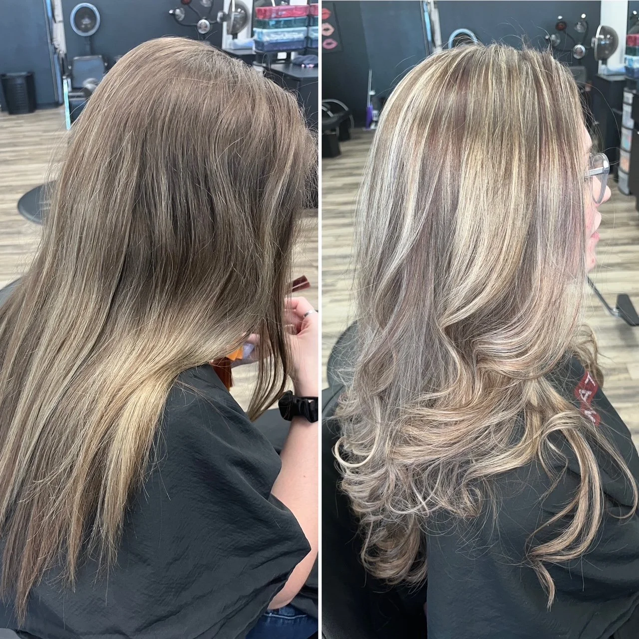 Woman's cut, color, and style Split-Dye Woman's cut, color, and style Men's haircut Collage Red hair color